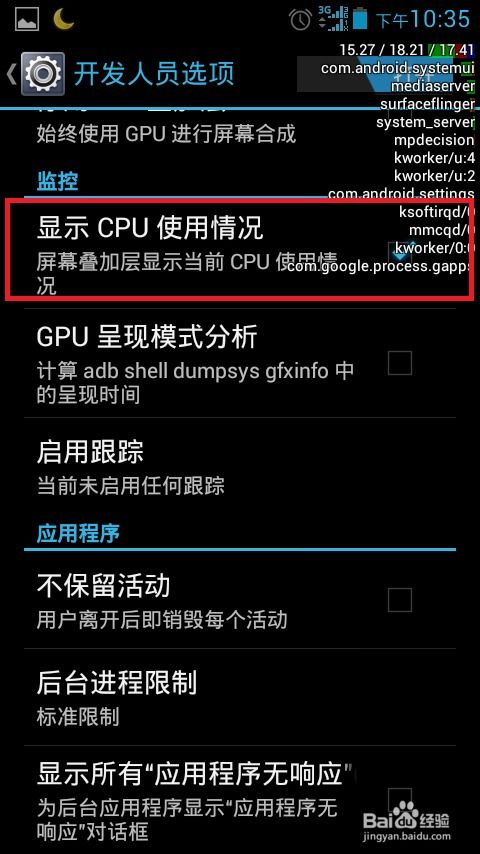 你知道吗,即使你关闭了某个应用,它可能还在后台悄悄运行,占用CPU资源。根据《2023安卓系统性能报告》,后台应用平均占用CPU资源的比例约为15%。所以,定期清理后台应用,可以让CPU更高效地工作。
