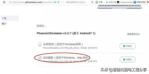 2. 下载安卓系统镜像文件:打开浏览器,搜索“安卓系统镜像下载”,选择一个合适的版本,下载到电脑上。